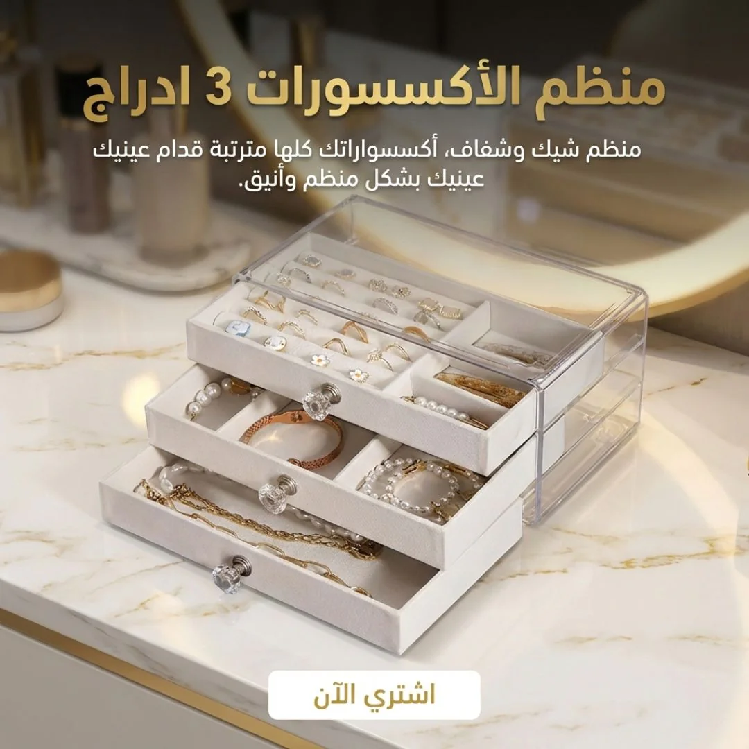 مع منظم الإكسسوارات 3 أدراج هتعيشي إحساس الرفاهية والترتيب… وكل حاجة ليها مكانها 💖